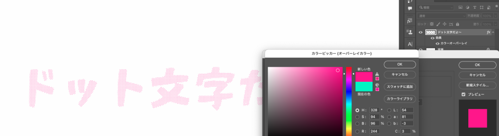 ⑤カラーオーバーレイやグラデーションオーバーレイで色つけ