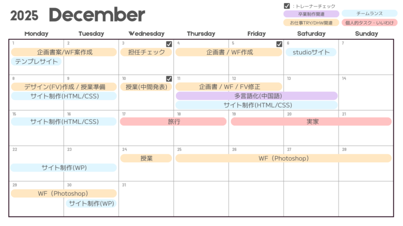 デザイン入れたら入ってね!と言われましたが、制作サポートデーまでは、チームランスのホームページを作成したり、実家に帰ったり旅行行ったりと、ほぼ!時間を使用することができない日々を過ごしており、私はデザインに入ることができず、4人生徒がいるうち、1人しか入っておりませんでした!笑